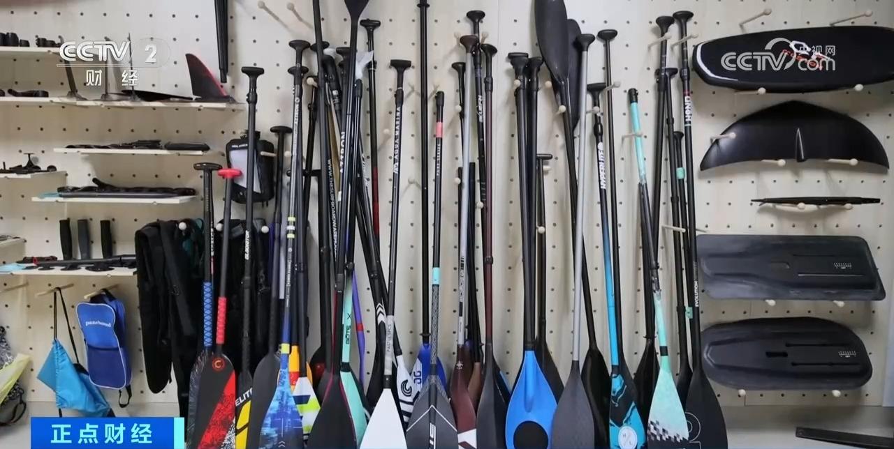 船桨是不少水上运动的重要装备,碳纤维船桨重量轻、强度大,成为很多桨板、水球等运动爱好者的必备工具。记者在一家船桨生产企业看到,工人们正有序加工、组装产品,打包送往仓库。企业负责人表示,今年他们各款产品的销售情况都普遍不错。